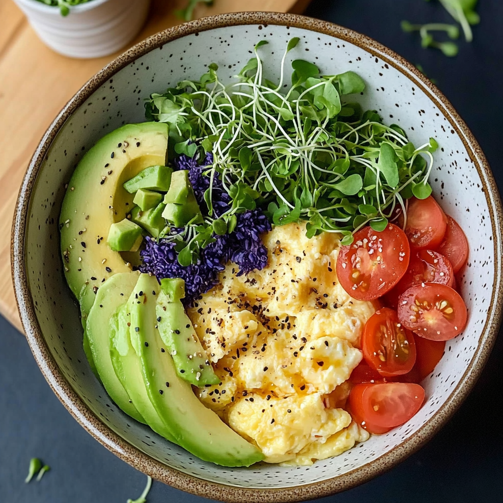 Creamy Scrambled Egg Bowl with Avocado, Microgreens & Veggies is the perfect way to start your day. This energizing breakfast bowl combines buttery scrambled eggs, sliced avocado, vibrant microgreens, and …