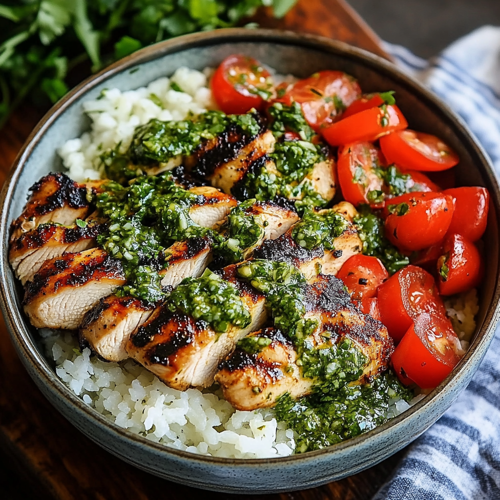 This Chimichurri Grilled Chicken Bowl with Garlic Sauce is loaded with juicy grilled chicken, a vibrant chimichurri drizzle, creamy garlic sauce, and fresh veggies. It’s the perfect meal prep idea or a balanced dinner bursting with herby, tangy, and savory flavors.