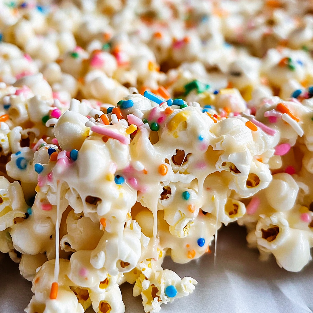 Now comes the fun part—adding the sprinkles! Sprinkle them over the popcorn mixture and give it a final toss to distribute them evenly throughout.