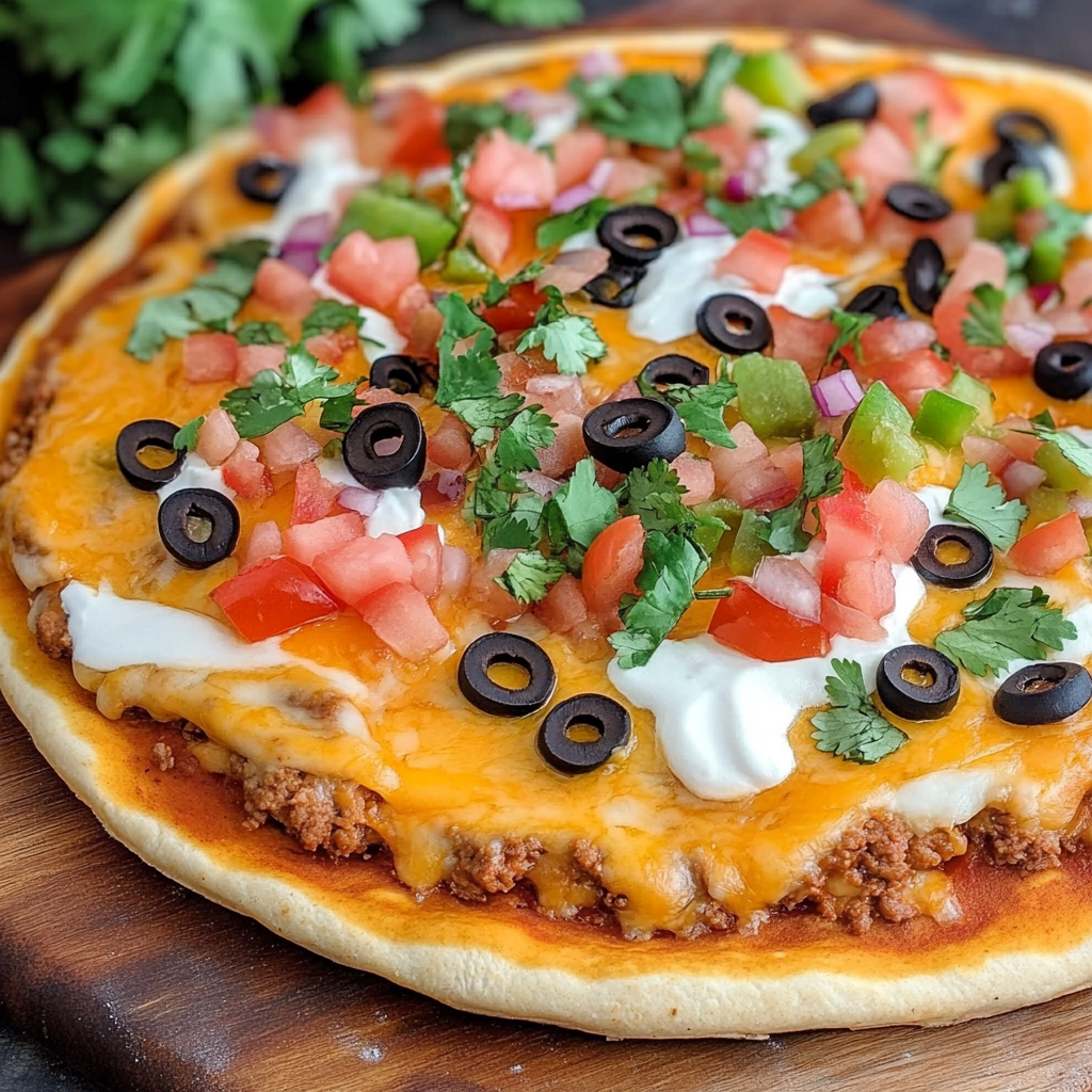 - Add Fresh Toppings: Once out of the oven, top with chopped tomatoes, olives, green onions, lettuce, and sour cream.
