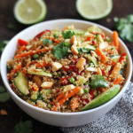 A refreshing and healthy Thai Quinoa Crunch Salad: A Refreshing Healthy Delight! packed with vibrant vegetables and a flavorful dressing is perfect for any occasion. Whether it’s a family gathering, a picnic, or a light weekday lunch, this salad offers a delightful blend of textures and tastes that will impress your guests and satisfy your cravings. With its colorful ingredients and zesty dressing, this salad is not only nutritious but also visually appealing.